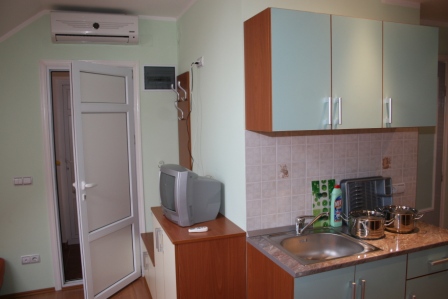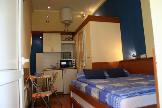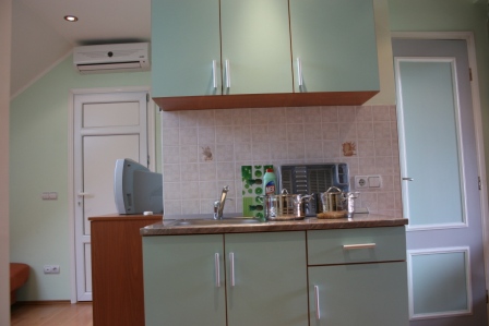Apartman 3 je smesten u prizemlju objekta i sastoji se iz dve prostorije. U prvom delu se nalazi veliki bracni lezaj sa garderobnim ormarom a u drugom delu koji je potpuno odvojen nalazi se trpezarijsko-kuhinjski prostor i trosed na razvlacenje. Apartman je klimatizovan sa potpuno opremljenom kuhinjom, kupatilom, kablovskom i terasom sa pogledom na uredjeno dvorište.
