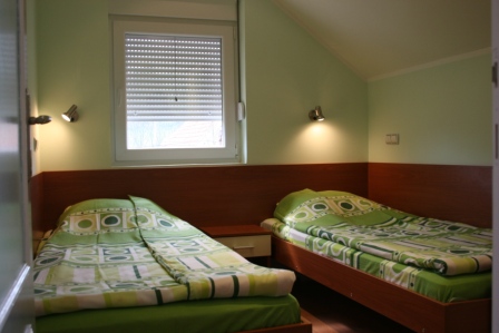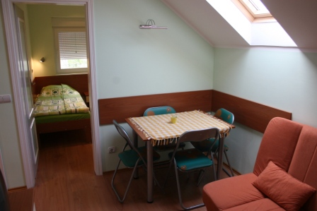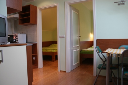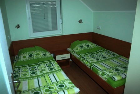 Apartman 1 je veliki porodični apartman, opremljen u modernom stilu sa dve odvojene sobe. U jednoj spavaćoj sobi se nalazi veliki bračni ležaj, a u drugoj sobi dva odvojena ležaja koja se mogu i sastaviti po potrebi. U prostoru boravka se takođe nalazi trosed sa mogućnošću razvlacenja, TV sa kablovskim signalom, trpezarijski sto i stolice i lepo upakovana kuhinja sa svom potrebnom opremom. Apartman poseduje i potpuno novo kupatilo sa kadom i veliku, natkrivenu, komfornu terasu sa pogledom na lepo uredjeno dvoriste, sa baštenskim stolicama i stolom koji moze poslužiti i za ručavanje. Klimatizovan je i poseduje parking mesto u sklopu dvorista.