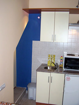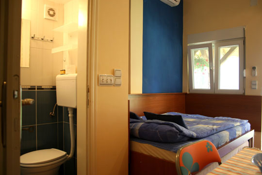Apartman 5 je studijskog tipa. Nalazi se u prizemnom delu objekta. Poseduje potpuno opremljenu kuhinju, trpezarijski sto i stolice, kablovski TV signal i jedan ležaj za dve osobe. Apartman je klimatizovan, opremljen modernom rasvetom koja mu daje posebnu draž i poseduje parking mesto i natkrivenu terasu sa bastenskim stolicama i stolom. Terasa je u nivou sa lepo uredjenim dvoristem sa puno cveća tako da se svaki gost oseća, zaista prijatno i opušteno.